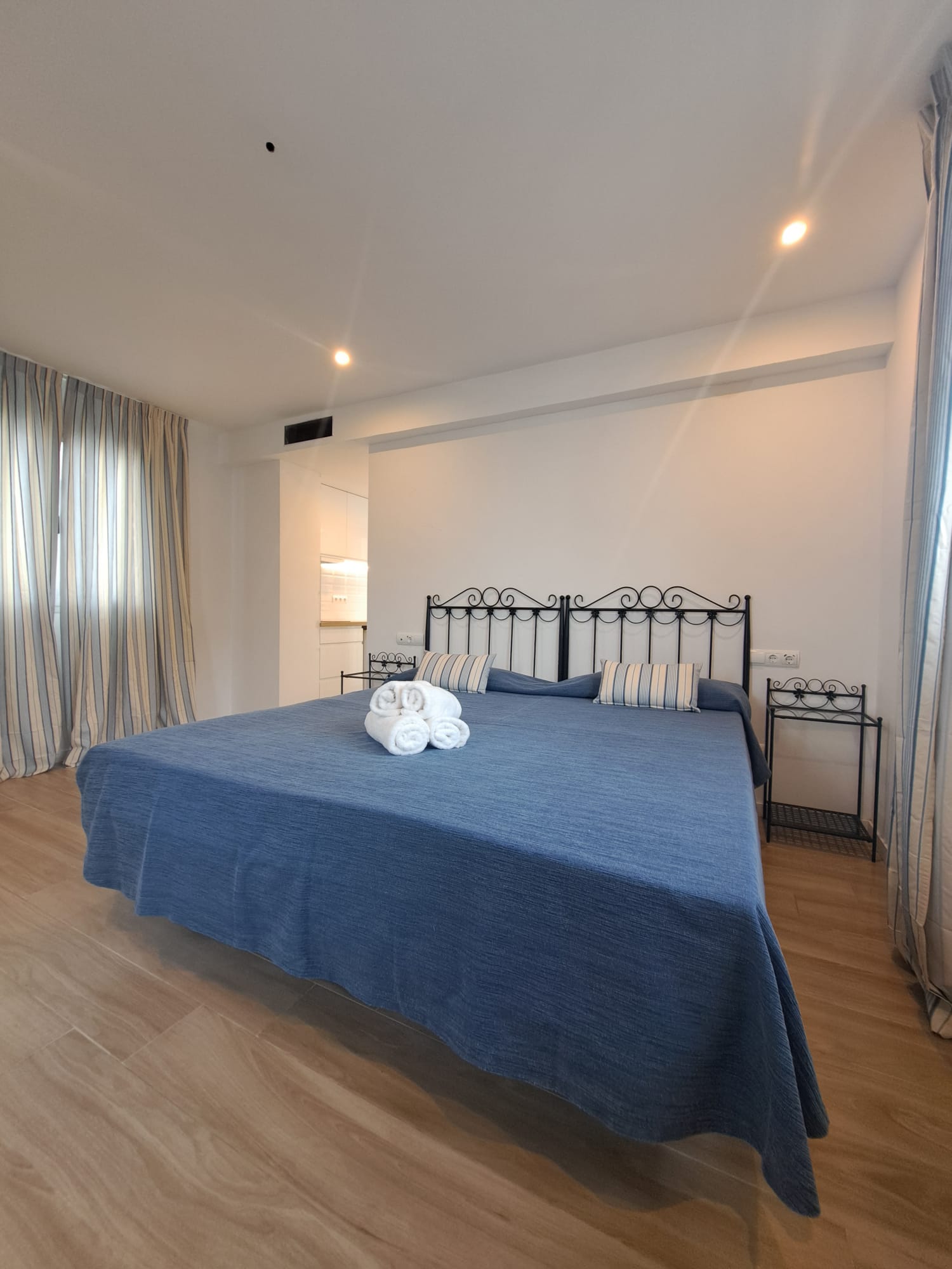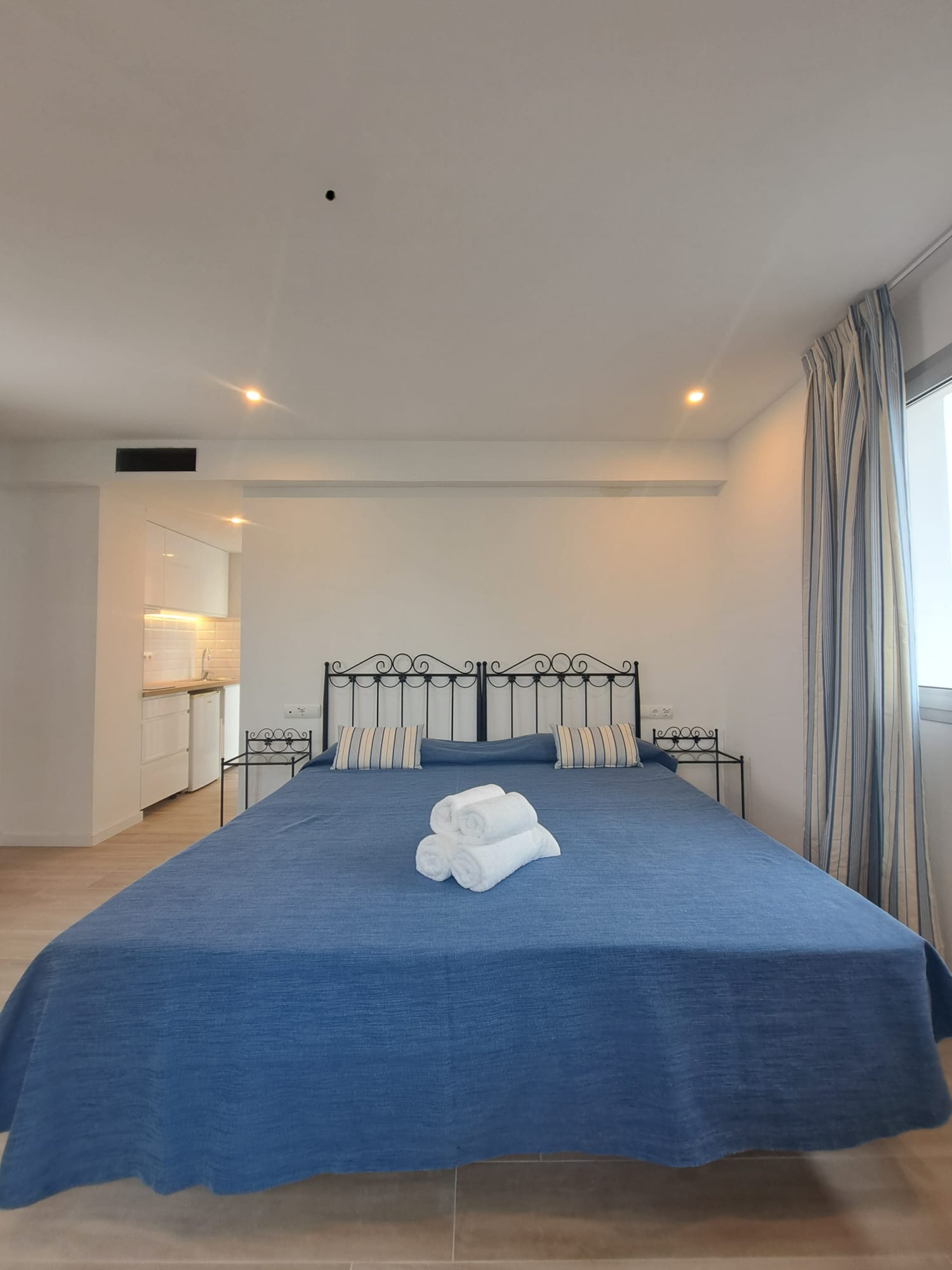 Habitación de 31 metros cuadrados con una cama de 2 x 2 metros, cocina completa. Terraza exterior con vistas al mar. Habitación 2pax con posibilidad de 3pax.
